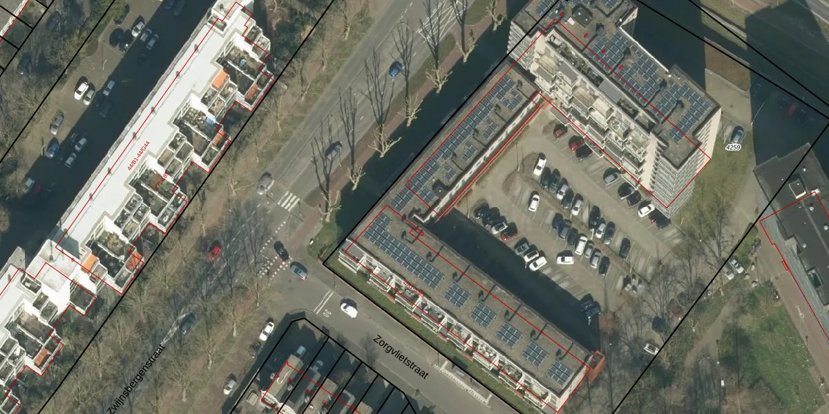 Het perceel waarop Zorgvlietstraat 1-C9 staat heeft een oppervlakte van 7250 m². Dit is een zeer groot perceel. De perceeloppervlakte wordt geregistreerd door het Kadaster. Gedetailleerde informatie over de maten van dit perceel kunt u vinden in het rapport Kadastrale kaart met maatvoering van Zorgvlietstraat 1-C9.