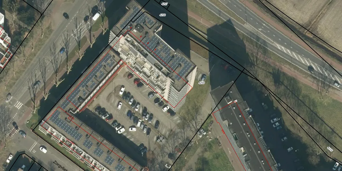 Het perceel waarop Zorgvlietstraat 3-B4 staat heeft een oppervlakte van 7250 m². Dit is een zeer groot perceel. De perceeloppervlakte wordt geregistreerd door het Kadaster. Gedetailleerde informatie over de maten van dit perceel kunt u vinden in het rapport Kadastrale kaart met maatvoering van Zorgvlietstraat 3-B4.
