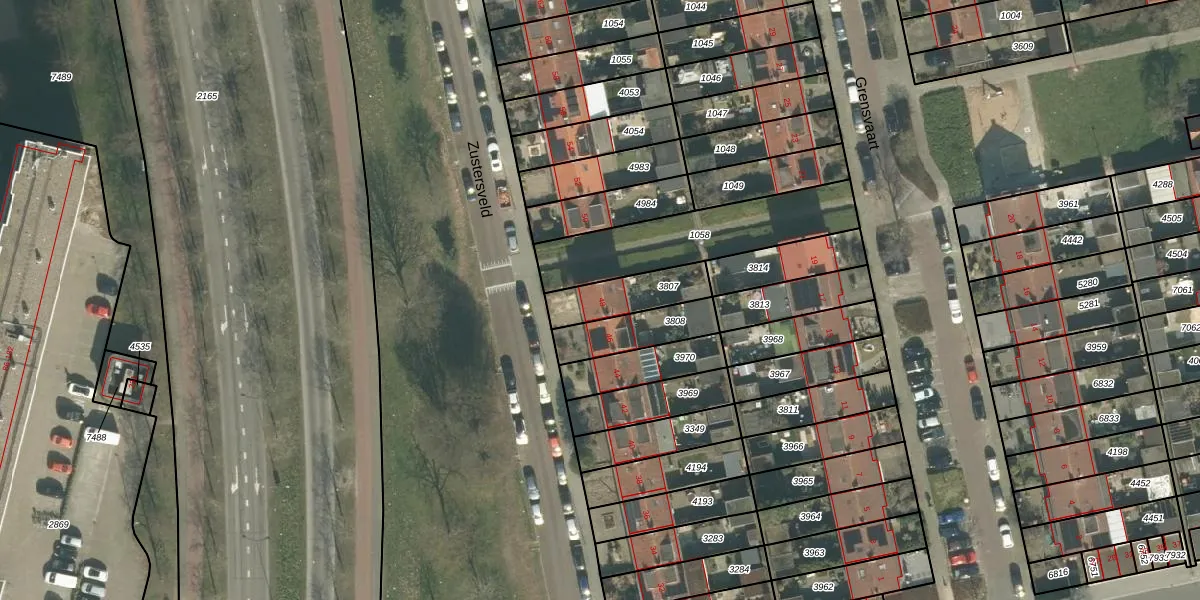 Gebruik de zoekbalk of klik op een perceel voor informatie over de adressen binnen dit perceel.