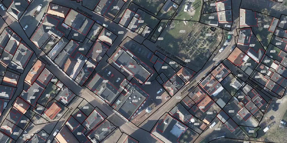 Het perceel waarop Ambthuiswal 1-04 staat heeft een oppervlakte van 365 m². Dit is een groot perceel. De perceeloppervlakte wordt geregistreerd door het Kadaster. Gedetailleerde informatie over de maten van dit perceel kunt u vinden in het rapport Kadastrale kaart met maatvoering van Ambthuiswal 1-04.