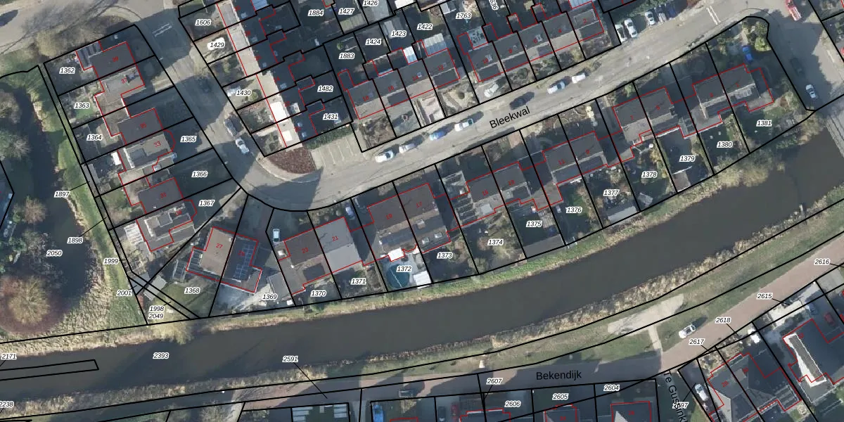 Het perceel waarop Bleekwal 17 staat heeft een oppervlakte van 301 m². Dit is een groot perceel. De perceeloppervlakte wordt geregistreerd door het Kadaster. Gedetailleerde informatie over de maten van dit perceel kunt u vinden in het rapport Kadastrale kaart met maatvoering van Bleekwal 17.