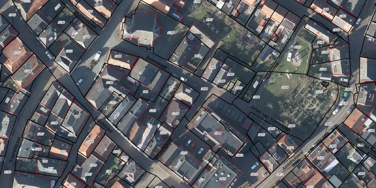 Het perceel waarop Boterstraat 6 staat heeft een oppervlakte van 120 m². Dit is een middelgroot perceel. De perceeloppervlakte wordt geregistreerd door het Kadaster. Gedetailleerde informatie over de maten van dit perceel kunt u vinden in het rapport Kadastrale kaart met maatvoering van Boterstraat 6.