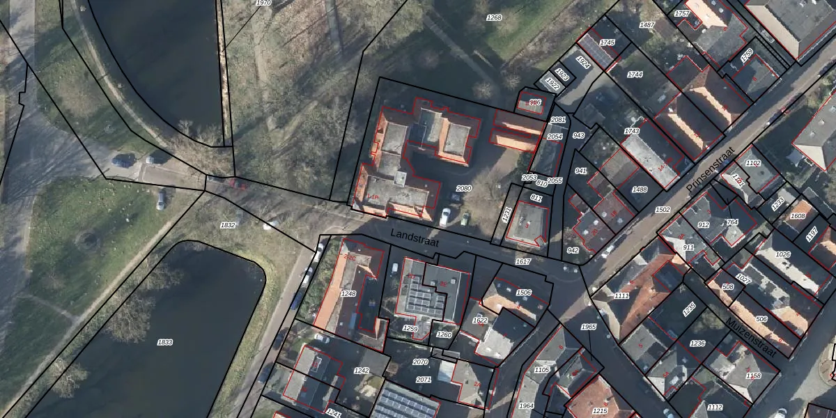 Het perceel waarop Landstraat 1 staat heeft een oppervlakte van 1223 m². Dit is een zeer groot perceel. De perceeloppervlakte wordt geregistreerd door het Kadaster. Gedetailleerde informatie over de maten van dit perceel kunt u vinden in het rapport Kadastrale kaart met maatvoering van Landstraat 1.