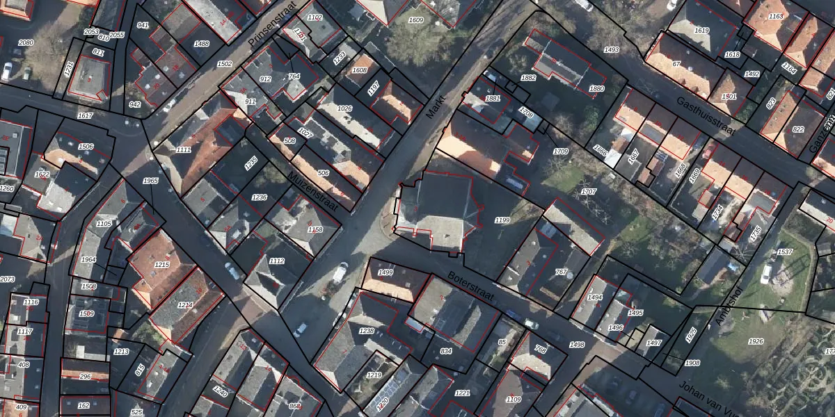 Het perceel waarop Markt 3 staat heeft een oppervlakte van 645 m². Dit is een groot perceel. De perceeloppervlakte wordt geregistreerd door het Kadaster. Gedetailleerde informatie over de maten van dit perceel kunt u vinden in het rapport Kadastrale kaart met maatvoering van Markt 3.