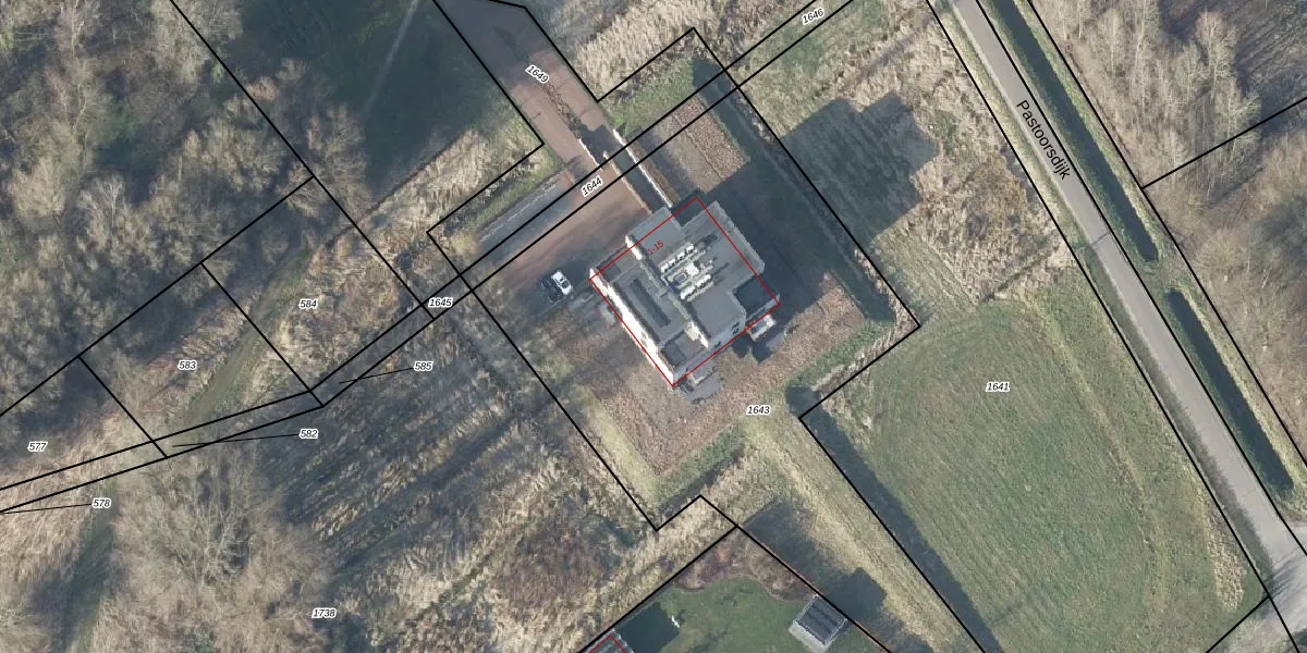 Het adres is gelegen op perceel 1643 in de sectie O en de kadastrale gemeente Aalten. De kadastrale aanduiding is aldus ATN02-O-1643. Het perceel is kleiner dan gemiddeld in Aalten. Het perceel is 3205 m² groot, terwijl het gemiddelde ligt op 5791,87 m². Het kleinste perceel in de kadastrale gemeente is 0 m² groot. De grootste perceeloppervlakte is 36,2 ha. Er zijn 9 adressen aanwezig op het perceel. De laatste wijziging in het de Basisregistratie Kadaster (BRK) was op 04-07-2023.