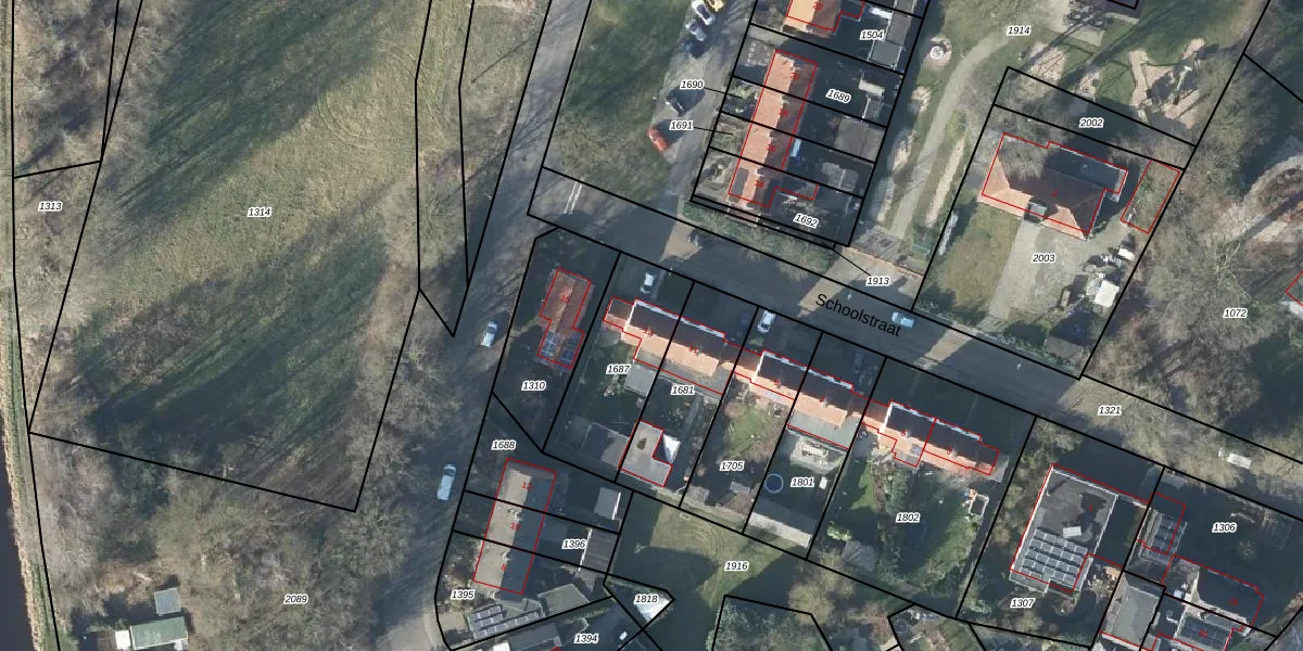 Het perceel waarop Schoolstraat 13 staat heeft een oppervlakte van 400 m². Dit is een groot perceel. De perceeloppervlakte wordt geregistreerd door het Kadaster. Gedetailleerde informatie over de maten van dit perceel kunt u vinden in het rapport Kadastrale kaart met maatvoering van Schoolstraat 13.