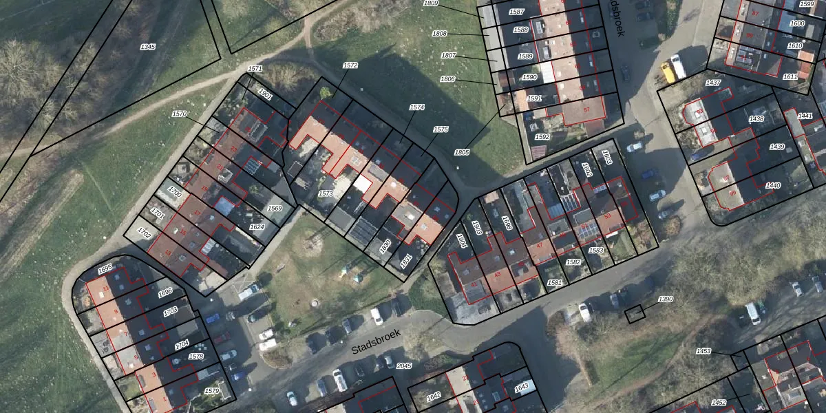 Het perceel waarop Stadsbroek 37 staat heeft een oppervlakte van 165 m². Dit is een middelgroot perceel. De perceeloppervlakte wordt geregistreerd door het Kadaster. Gedetailleerde informatie over de maten van dit perceel kunt u vinden in het rapport Kadastrale kaart met maatvoering van Stadsbroek 37.