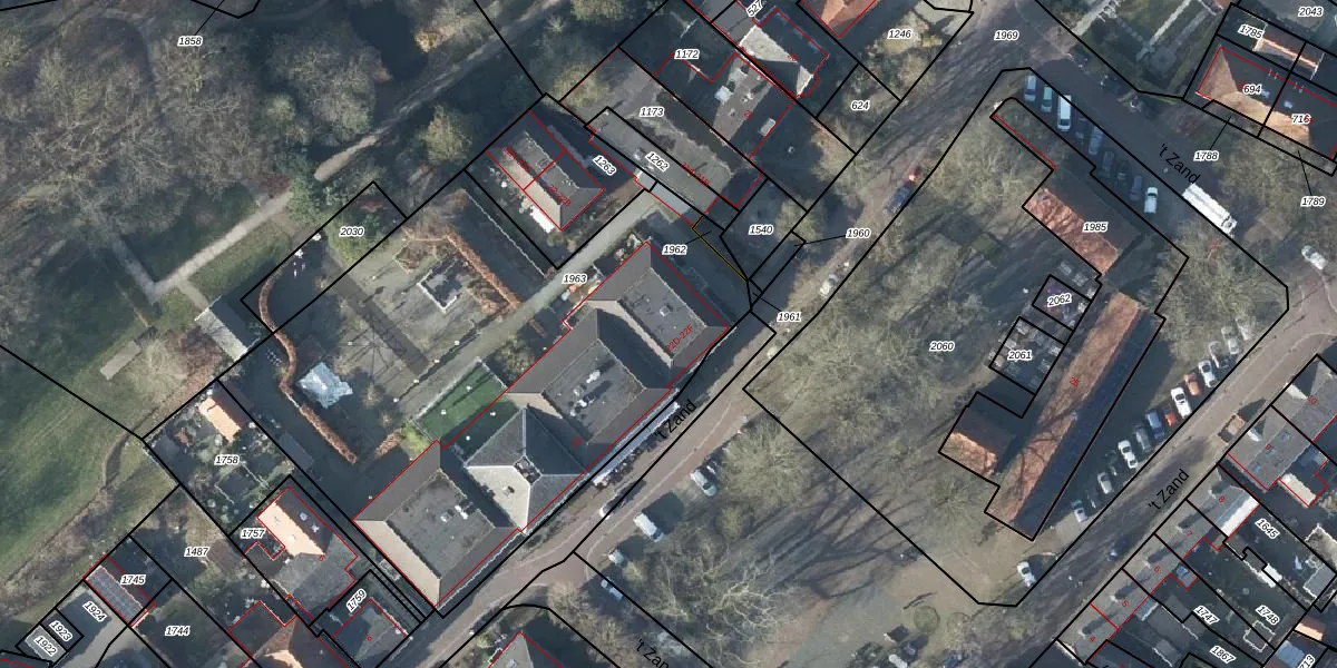 Het perceel waarop 't Zand 22-E staat heeft een oppervlakte van 2740 m². Dit is een zeer groot perceel. De perceeloppervlakte wordt geregistreerd door het Kadaster. Gedetailleerde informatie over de maten van dit perceel kunt u vinden in het rapport Kadastrale kaart met maatvoering van 't Zand 22-E.