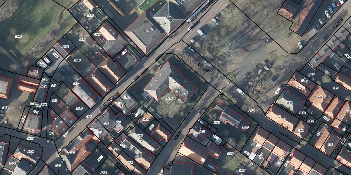 Het perceel waarop 't Zand 33 staat heeft een oppervlakte van 1114 m². Dit is een zeer groot perceel. De perceeloppervlakte wordt geregistreerd door het Kadaster. Gedetailleerde informatie over de maten van dit perceel kunt u vinden in het rapport Kadastrale kaart met maatvoering van 't Zand 33.