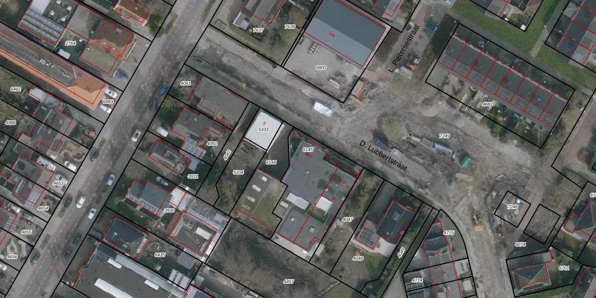 Het perceel waarop D. Lubbertstraat 8-d staat heeft een oppervlakte van 761 m². Dit is een groot perceel. De perceeloppervlakte wordt geregistreerd door het Kadaster. Gedetailleerde informatie over de maten van dit perceel kunt u vinden in het rapport Kadastrale kaart met maatvoering van D. Lubbertstraat 8-d.