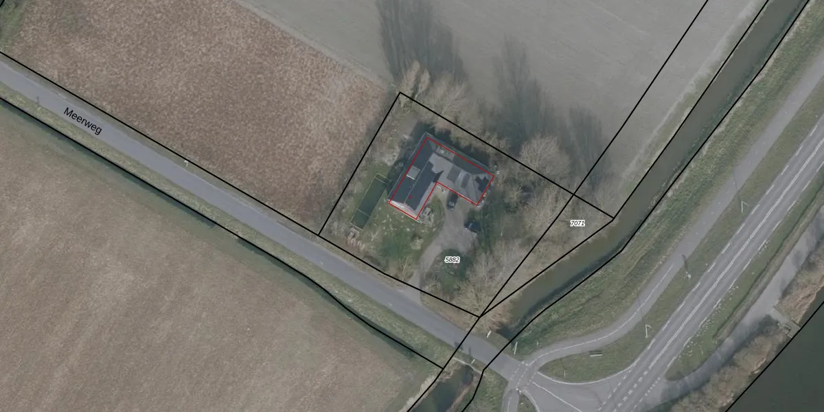 Het perceel waarop Meerweg 2 staat heeft een oppervlakte van 1750 m². Dit is een zeer groot perceel. De perceeloppervlakte wordt geregistreerd door het Kadaster. Gedetailleerde informatie over de maten van dit perceel kunt u vinden in het rapport Kadastrale kaart met maatvoering van Meerweg 2.