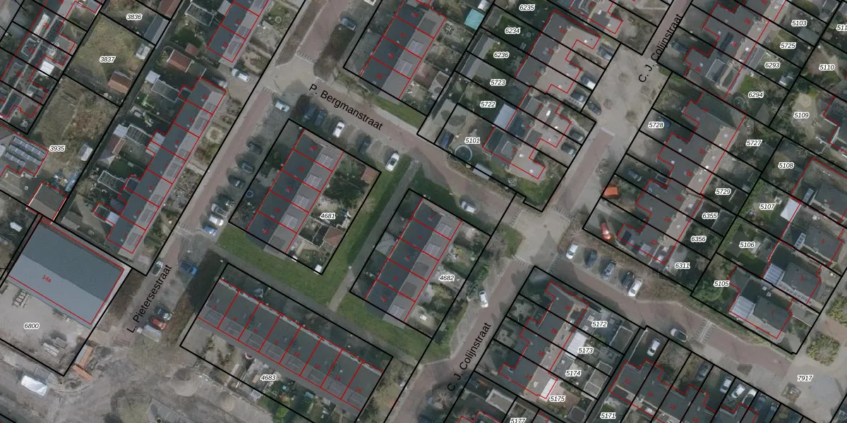 Het perceel waarop P. Bergmanstraat 2 staat heeft een oppervlakte van 630 m². Dit is een groot perceel. De perceeloppervlakte wordt geregistreerd door het Kadaster. Gedetailleerde informatie over de maten van dit perceel kunt u vinden in het rapport Kadastrale kaart met maatvoering van P. Bergmanstraat 2.
