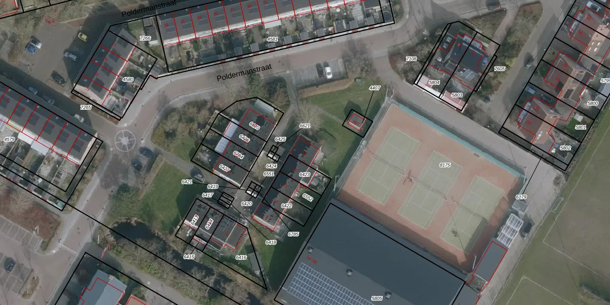 Het perceel waarop Poldermanstraat 16 staat heeft een oppervlakte van 3,1 ha. Dit is een zeer groot perceel. De perceeloppervlakte wordt geregistreerd door het Kadaster. Gedetailleerde informatie over de maten van dit perceel kunt u vinden in het rapport Kadastrale kaart met maatvoering van Poldermanstraat 16.
