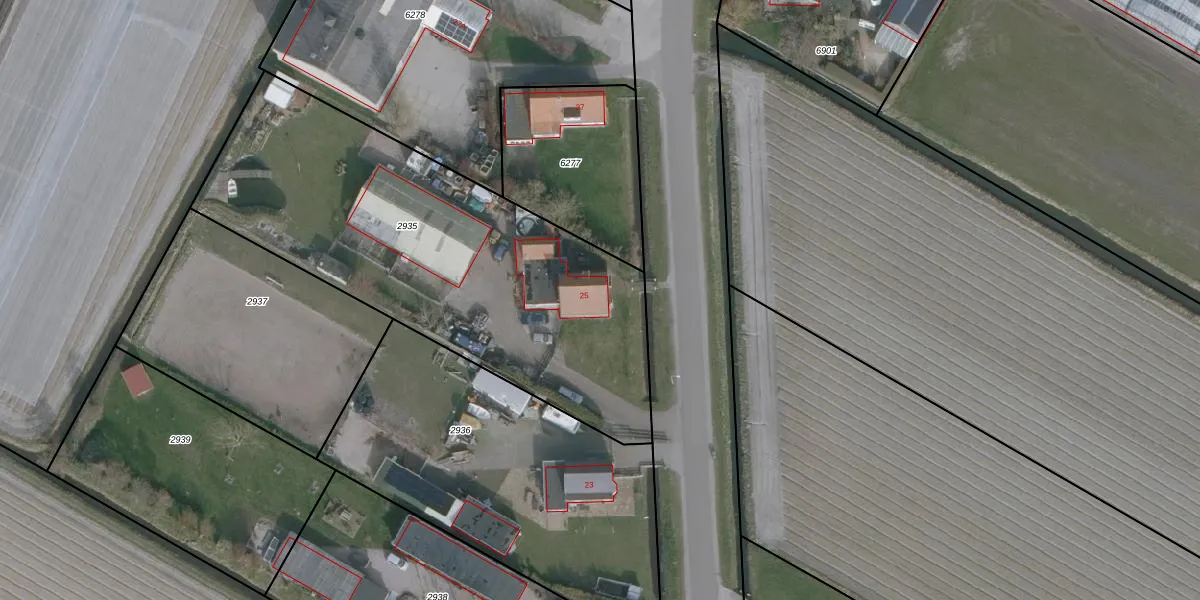 Het perceel waarop Schorweg 25 staat heeft een oppervlakte van 2045 m². Dit is een zeer groot perceel. De perceeloppervlakte wordt geregistreerd door het Kadaster. Gedetailleerde informatie over de maten van dit perceel kunt u vinden in het rapport Kadastrale kaart met maatvoering van Schorweg 25.