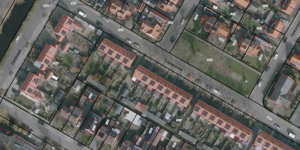 Het perceel waarop Tulpenstraat 12 staat heeft een oppervlakte van 5971 m². Dit is een zeer groot perceel. De perceeloppervlakte wordt geregistreerd door het Kadaster. Gedetailleerde informatie over de maten van dit perceel kunt u vinden in het rapport Kadastrale kaart met maatvoering van Tulpenstraat 12.