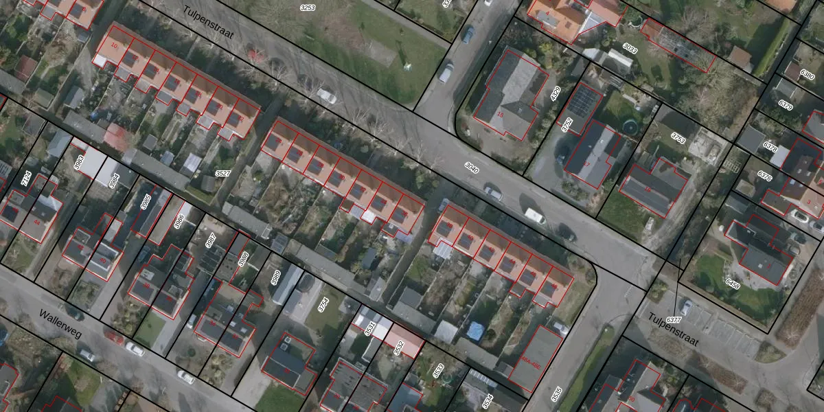 Het perceel waarop Tulpenstraat 36 staat heeft een oppervlakte van 5971 m². Dit is een zeer groot perceel. De perceeloppervlakte wordt geregistreerd door het Kadaster. Gedetailleerde informatie over de maten van dit perceel kunt u vinden in het rapport Kadastrale kaart met maatvoering van Tulpenstraat 36.