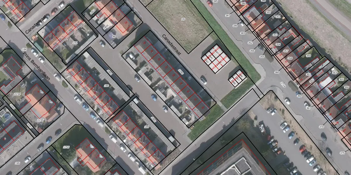 Het perceel waarop Canadastraat 28 staat heeft een oppervlakte van 1220 m². Dit is een zeer groot perceel. De perceeloppervlakte wordt geregistreerd door het Kadaster. Gedetailleerde informatie over de maten van dit perceel kunt u vinden in het rapport Kadastrale kaart met maatvoering van Canadastraat 28.