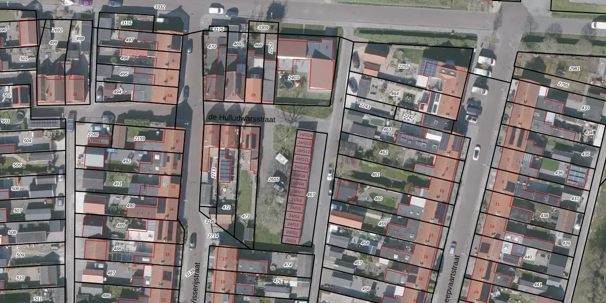 de Hulludwarsstraat 24-G12 is gelegen op kadastraal perceel OBG00EB467. Deze kadastrale aanduiding is uniek en wordt gebruikt door het Kadaster om eigendomsrechten en andere zakelijke rechten vast te leggen. Het perceel maakt onderdeel uit van de kadastrale gemeente Oostburg.