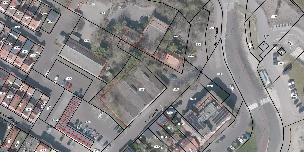 Gebruik de zoekbalk of klik op een perceel voor informatie over de adressen binnen dit perceel.