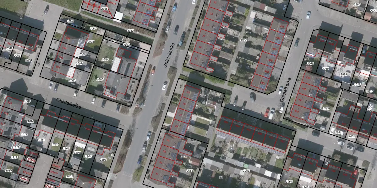 Het perceel waarop Ghistelkerke 23 staat heeft een oppervlakte van 4060 m². Dit is een zeer groot perceel. De perceeloppervlakte wordt geregistreerd door het Kadaster. Gedetailleerde informatie over de maten van dit perceel kunt u vinden in het rapport Kadastrale kaart met maatvoering van Ghistelkerke 23.
