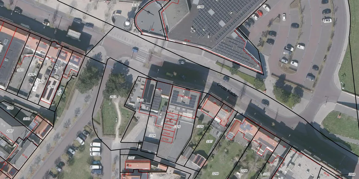 Grote Kade 27-001 is gelegen op kadastraal perceel OBG00EB1325. Deze kadastrale aanduiding is uniek en wordt gebruikt door het Kadaster om eigendomsrechten en andere zakelijke rechten vast te leggen. Het perceel maakt onderdeel uit van de kadastrale gemeente Oostburg.
