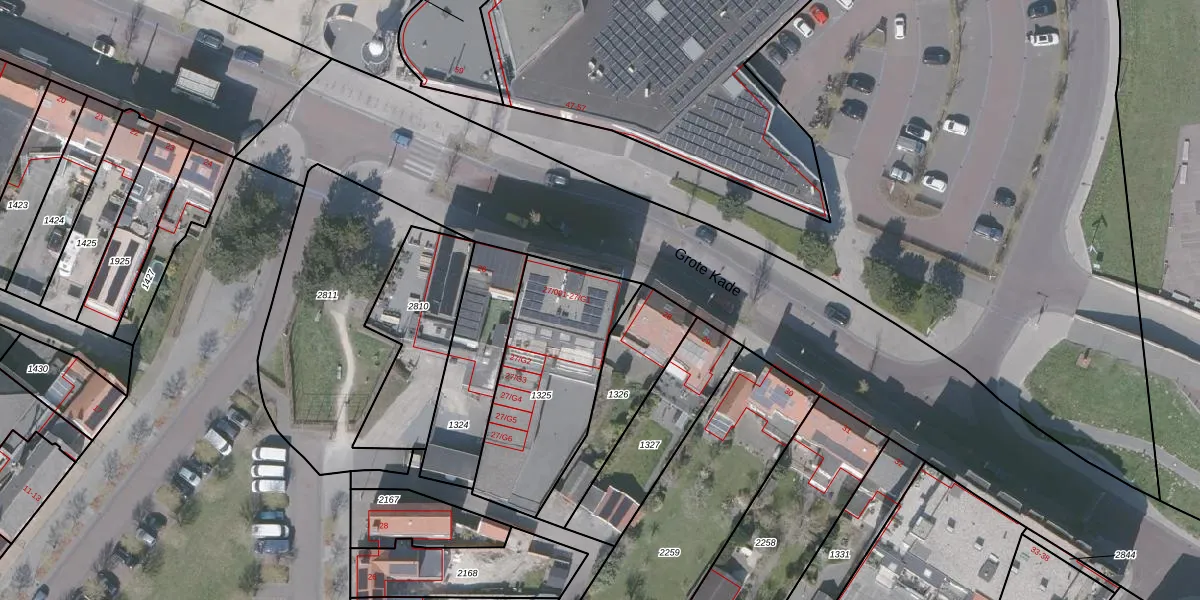 Grote Kade 27-102 is gelegen op kadastraal perceel OBG00EB1325. Deze kadastrale aanduiding is uniek en wordt gebruikt door het Kadaster om eigendomsrechten en andere zakelijke rechten vast te leggen. Het perceel maakt onderdeel uit van de kadastrale gemeente Oostburg.