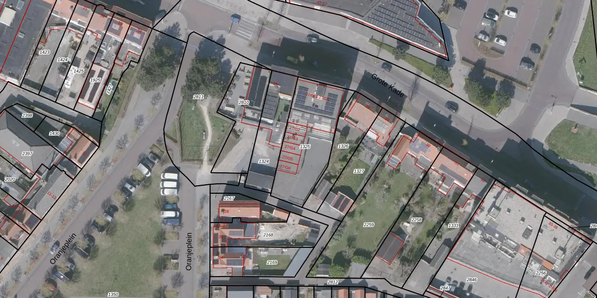 Grote Kade 27-G4 is gelegen op kadastraal perceel OBG00EB1325. Deze kadastrale aanduiding is uniek en wordt gebruikt door het Kadaster om eigendomsrechten en andere zakelijke rechten vast te leggen. Het perceel maakt onderdeel uit van de kadastrale gemeente Oostburg.