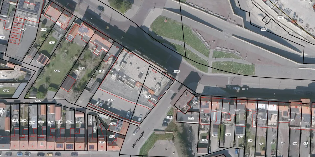 Het perceel waarop Grote Kade 38 staat heeft een oppervlakte van 443 m². Dit is een groot perceel. De perceeloppervlakte wordt geregistreerd door het Kadaster. Gedetailleerde informatie over de maten van dit perceel kunt u vinden in het rapport Kadastrale kaart met maatvoering van Grote Kade 38.