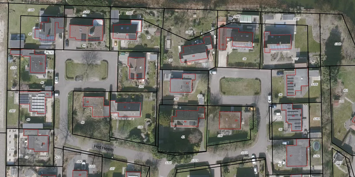 Het perceel waarop Het Heem 41 staat heeft een oppervlakte van 510 m². Dit is een groot perceel. De perceeloppervlakte wordt geregistreerd door het Kadaster. Gedetailleerde informatie over de maten van dit perceel kunt u vinden in het rapport Kadastrale kaart met maatvoering van Het Heem 41.