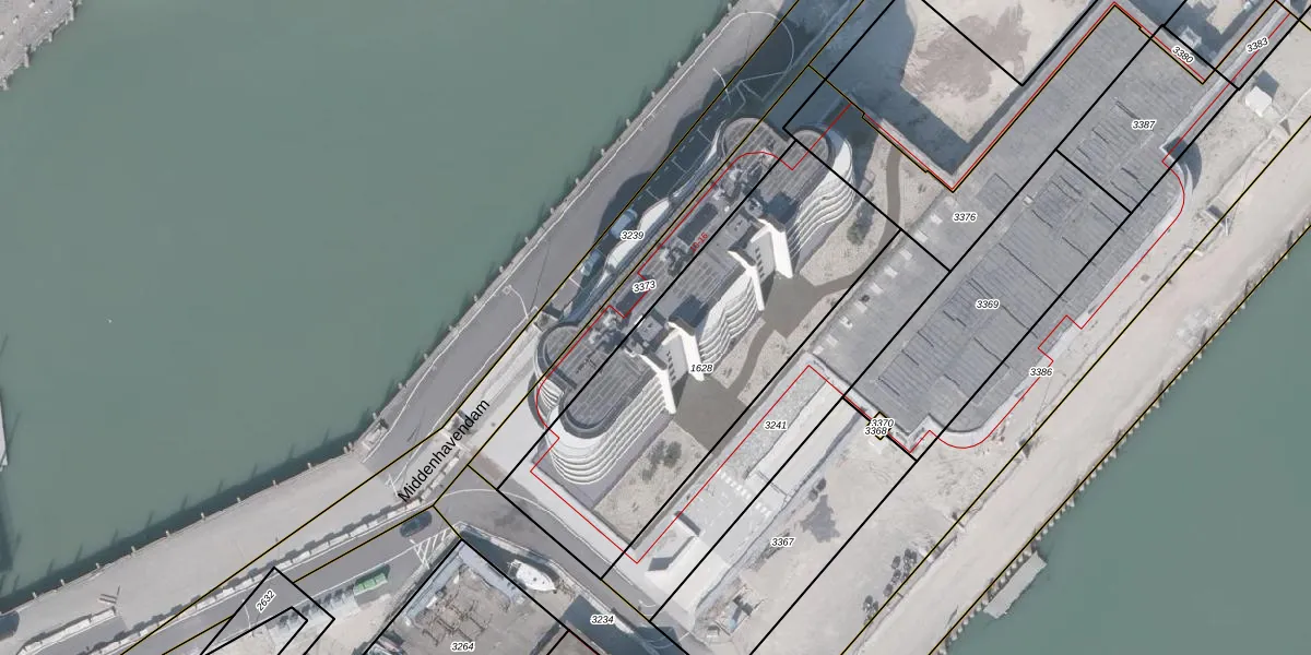 Het perceel waarop Middenhavendam 12-301 staat heeft een oppervlakte van 1470 m². Dit is een zeer groot perceel. De perceeloppervlakte wordt geregistreerd door het Kadaster. Gedetailleerde informatie over de maten van dit perceel kunt u vinden in het rapport Kadastrale kaart met maatvoering van Middenhavendam 12-301.