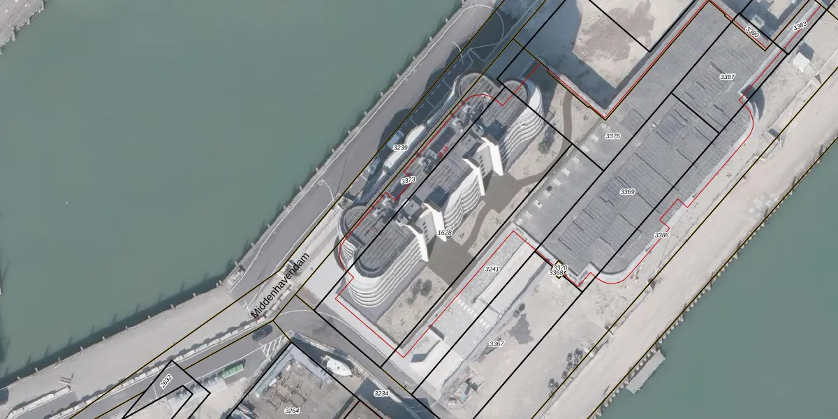 Het perceel waarop Middenhavendam 12-401 staat heeft een oppervlakte van 1470 m². Dit is een zeer groot perceel. De perceeloppervlakte wordt geregistreerd door het Kadaster. Gedetailleerde informatie over de maten van dit perceel kunt u vinden in het rapport Kadastrale kaart met maatvoering van Middenhavendam 12-401.