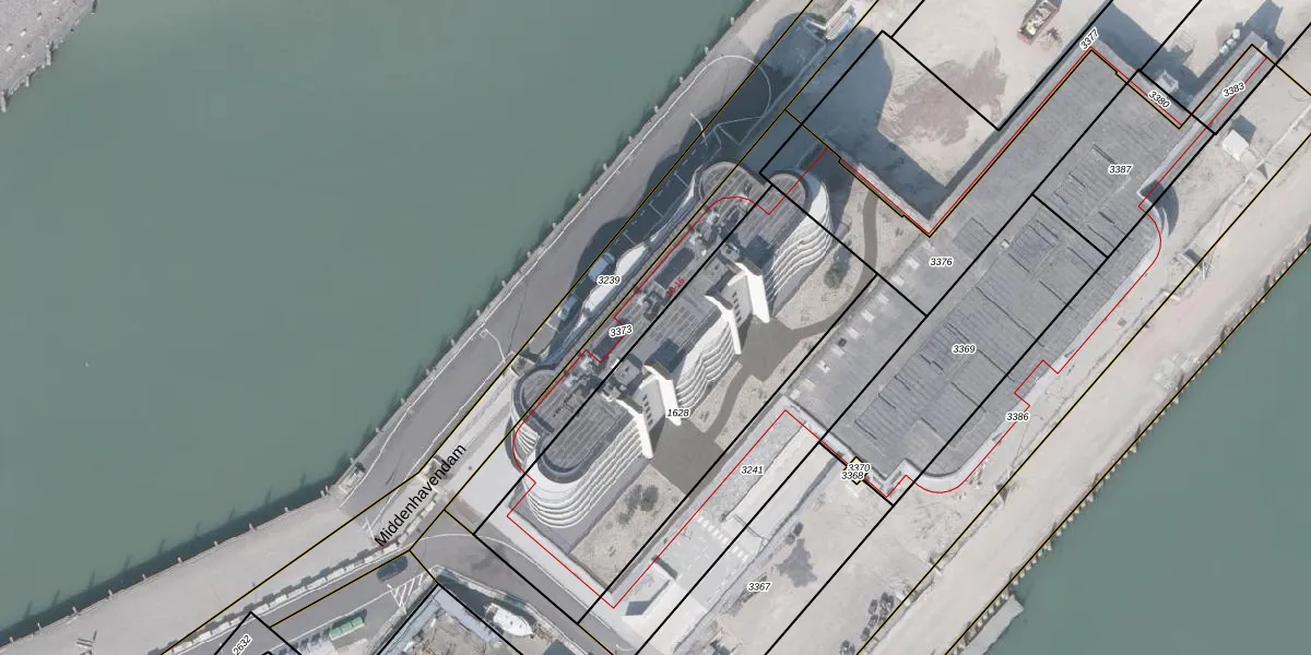 Het perceel waarop Middenhavendam 14-302 staat heeft een oppervlakte van 1470 m². Dit is een zeer groot perceel. De perceeloppervlakte wordt geregistreerd door het Kadaster. Gedetailleerde informatie over de maten van dit perceel kunt u vinden in het rapport Kadastrale kaart met maatvoering van Middenhavendam 14-302.