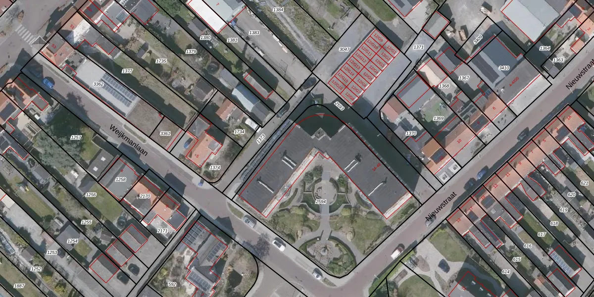 Het perceel waarop Nieuwstraat 32 staat heeft een oppervlakte van 2024 m². Dit is een zeer groot perceel. De perceeloppervlakte wordt geregistreerd door het Kadaster. Gedetailleerde informatie over de maten van dit perceel kunt u vinden in het rapport Kadastrale kaart met maatvoering van Nieuwstraat 32.