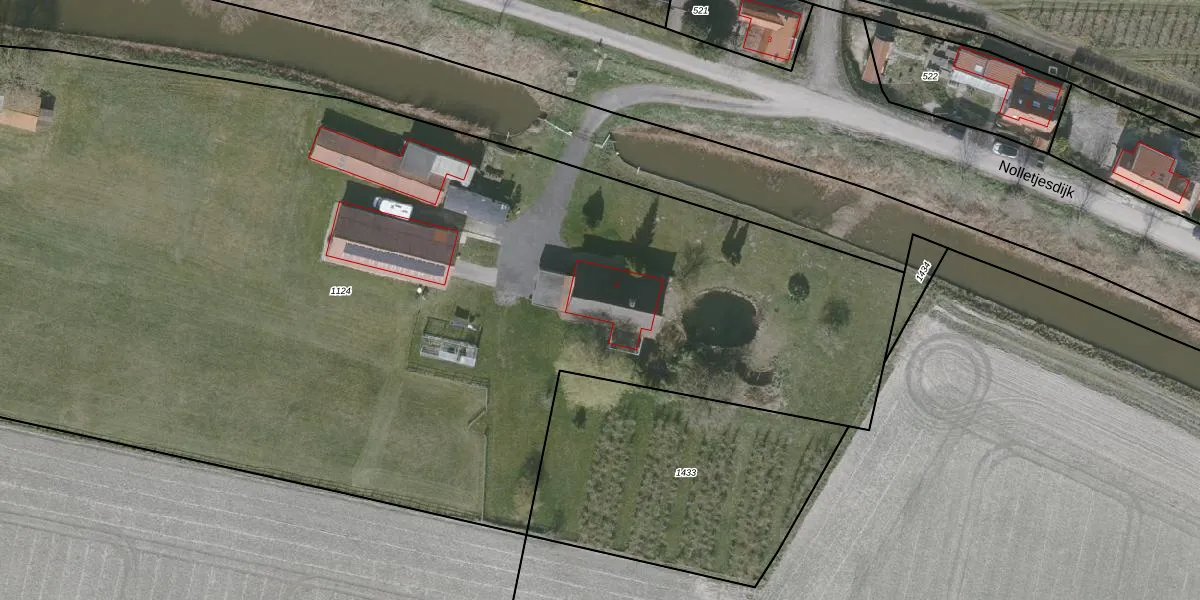 Het perceel waarop Nolletjesdijk 2 staat heeft een oppervlakte van 9570 m². Dit is een zeer groot perceel. De perceeloppervlakte wordt geregistreerd door het Kadaster. Gedetailleerde informatie over de maten van dit perceel kunt u vinden in het rapport Kadastrale kaart met maatvoering van Nolletjesdijk 2.