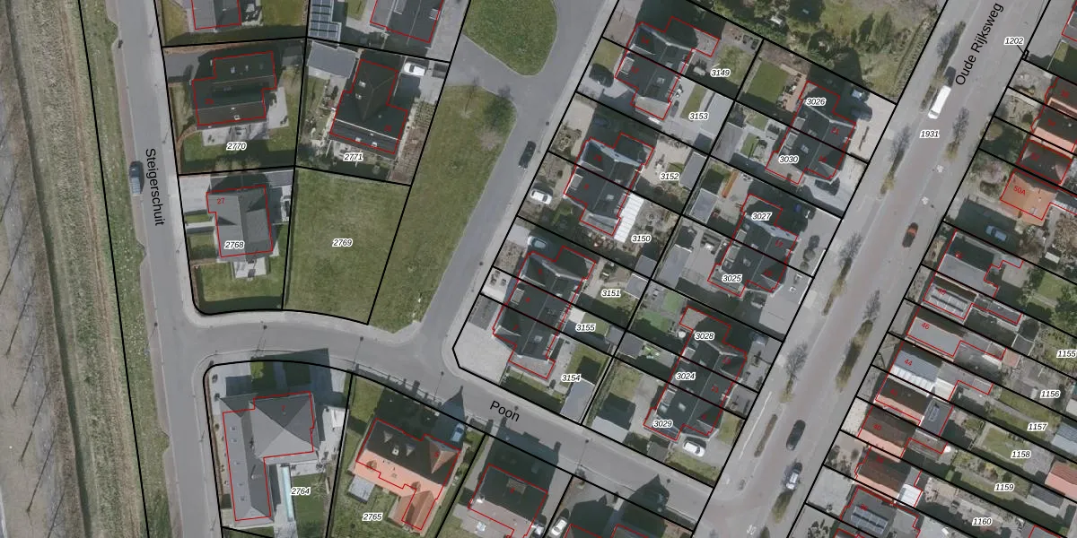 Het perceel waarop Poon 6 staat heeft een oppervlakte van 287 m². Dit is een middelgroot perceel. De perceeloppervlakte wordt geregistreerd door het Kadaster. Gedetailleerde informatie over de maten van dit perceel kunt u vinden in het rapport Kadastrale kaart met maatvoering van Poon 6.