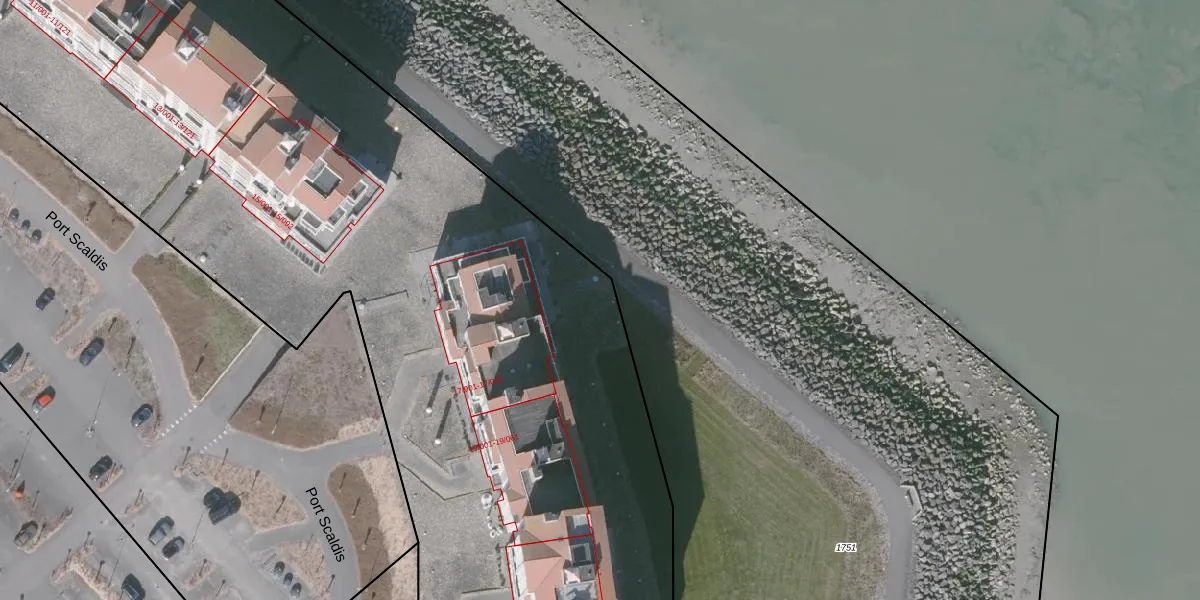 Het perceel waarop Port Scaldis 1-G-301 staat heeft een oppervlakte van 1,3 ha. Dit is een zeer groot perceel. De perceeloppervlakte wordt geregistreerd door het Kadaster. Gedetailleerde informatie over de maten van dit perceel kunt u vinden in het rapport Kadastrale kaart met maatvoering van Port Scaldis 1-G-301.
