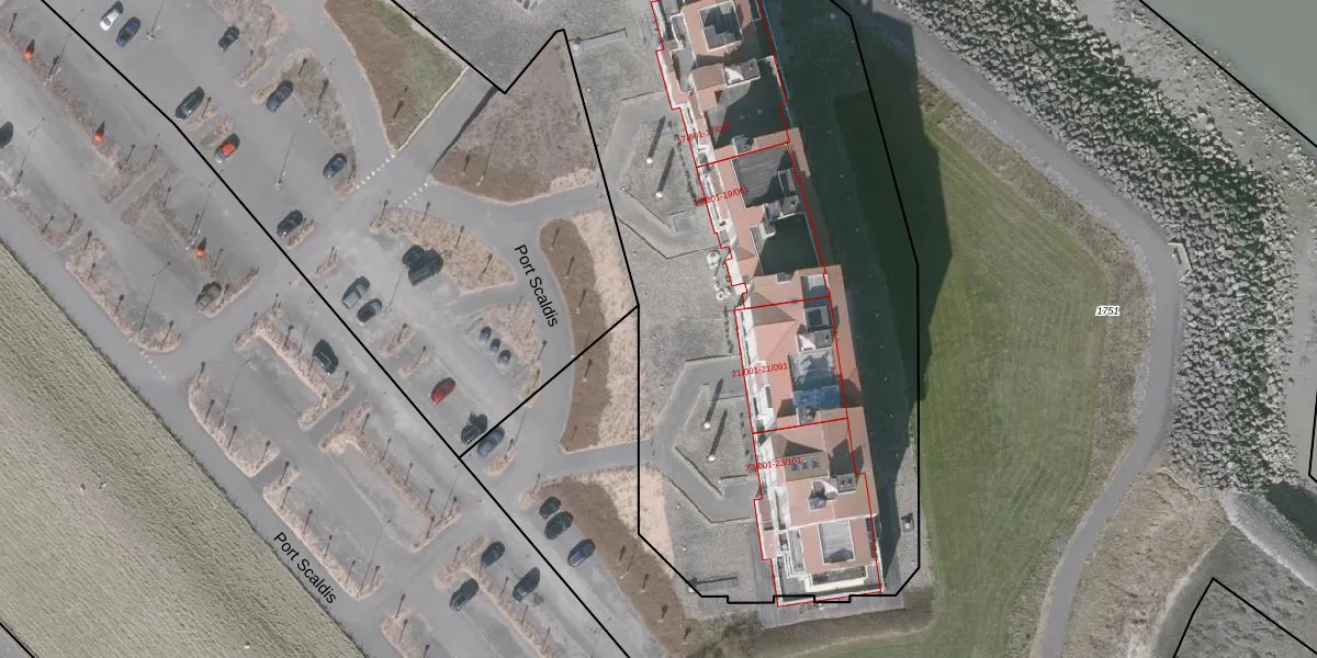 Het perceel waarop Port Scaldis 1-G-369 staat heeft een oppervlakte van 1,3 ha. Dit is een zeer groot perceel. De perceeloppervlakte wordt geregistreerd door het Kadaster. Gedetailleerde informatie over de maten van dit perceel kunt u vinden in het rapport Kadastrale kaart met maatvoering van Port Scaldis 1-G-369.