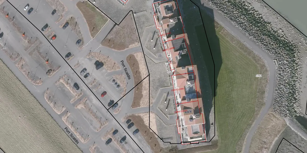 Het perceel waarop Port Scaldis 1-G-368 staat heeft een oppervlakte van 1,3 ha. Dit is een zeer groot perceel. De perceeloppervlakte wordt geregistreerd door het Kadaster. Gedetailleerde informatie over de maten van dit perceel kunt u vinden in het rapport Kadastrale kaart met maatvoering van Port Scaldis 1-G-368.