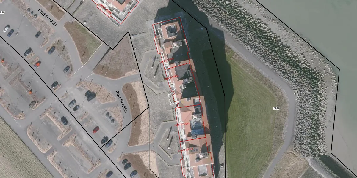 Port Scaldis 19-021 is gelegen op kadastraal perceel OBG00L1252. Deze kadastrale aanduiding is uniek en wordt gebruikt door het Kadaster om eigendomsrechten en andere zakelijke rechten vast te leggen. Het perceel maakt onderdeel uit van de kadastrale gemeente Oostburg.