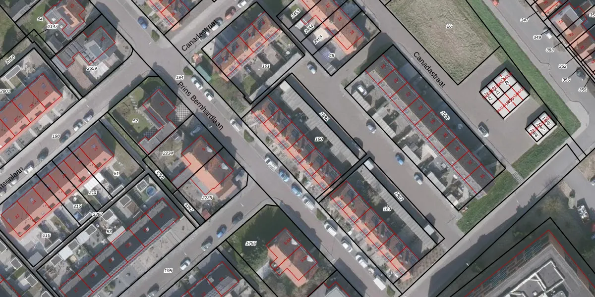 Het perceel waarop Prins Bernhardlaan 18 staat heeft een oppervlakte van 745 m². Dit is een groot perceel. De perceeloppervlakte wordt geregistreerd door het Kadaster. Gedetailleerde informatie over de maten van dit perceel kunt u vinden in het rapport Kadastrale kaart met maatvoering van Prins Bernhardlaan 18.