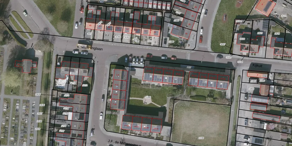 Het perceel waarop Ringlaan 12 staat heeft een oppervlakte van 3225 m². Dit is een zeer groot perceel. De perceeloppervlakte wordt geregistreerd door het Kadaster. Gedetailleerde informatie over de maten van dit perceel kunt u vinden in het rapport Kadastrale kaart met maatvoering van Ringlaan 12.