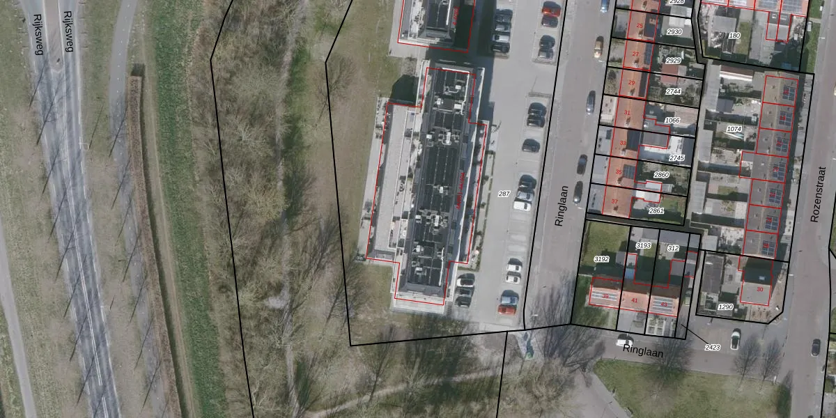 Het perceel waarop Ringlaan 4-A-203 staat heeft een oppervlakte van 5290 m². Dit is een zeer groot perceel. De perceeloppervlakte wordt geregistreerd door het Kadaster. Gedetailleerde informatie over de maten van dit perceel kunt u vinden in het rapport Kadastrale kaart met maatvoering van Ringlaan 4-A-203.