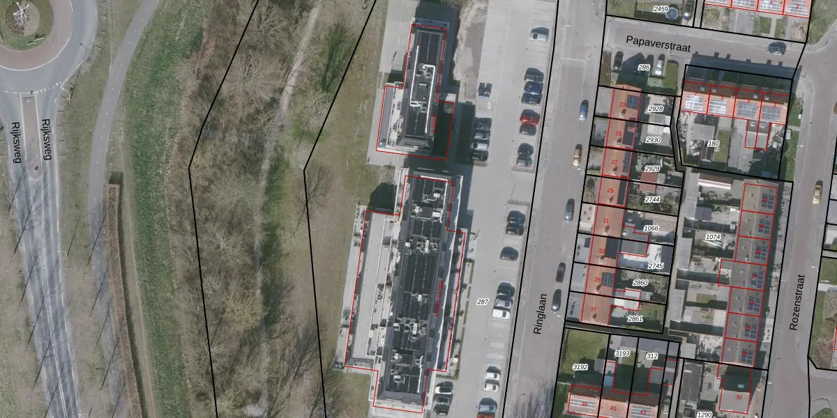 Het perceel waarop Ringlaan 4-A-206 staat heeft een oppervlakte van 5290 m². Dit is een zeer groot perceel. De perceeloppervlakte wordt geregistreerd door het Kadaster. Gedetailleerde informatie over de maten van dit perceel kunt u vinden in het rapport Kadastrale kaart met maatvoering van Ringlaan 4-A-206.