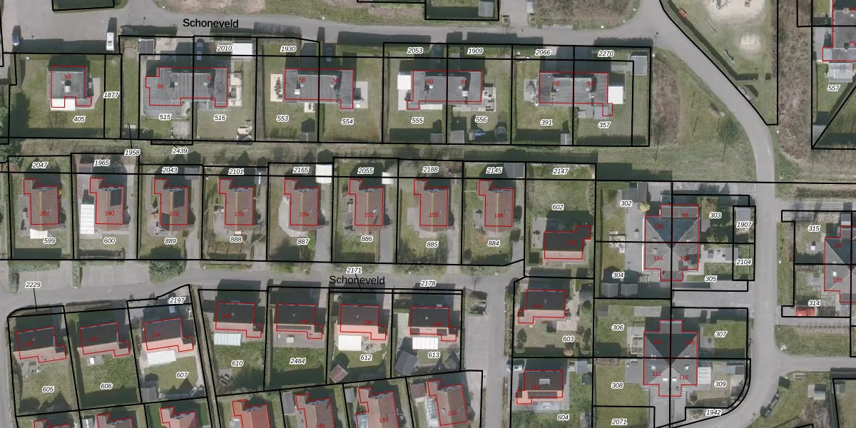 Het perceel waarop Schoneveld 150 staat heeft een oppervlakte van 305 m². Dit is een groot perceel. De perceeloppervlakte wordt geregistreerd door het Kadaster. Gedetailleerde informatie over de maten van dit perceel kunt u vinden in het rapport Kadastrale kaart met maatvoering van Schoneveld 150.