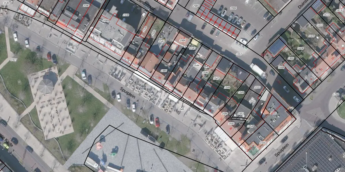 Spuiplein 27-A is gelegen op kadastraal perceel OBG00EB1543. Deze kadastrale aanduiding is uniek en wordt gebruikt door het Kadaster om eigendomsrechten en andere zakelijke rechten vast te leggen. Het perceel maakt onderdeel uit van de kadastrale gemeente Oostburg.