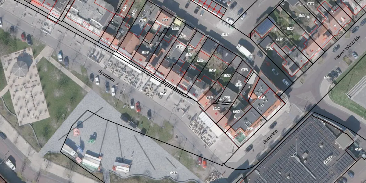 Spuiplein 33-A is gelegen op kadastraal perceel OBG00EB1547. Deze kadastrale aanduiding is uniek en wordt gebruikt door het Kadaster om eigendomsrechten en andere zakelijke rechten vast te leggen. Het perceel maakt onderdeel uit van de kadastrale gemeente Oostburg.