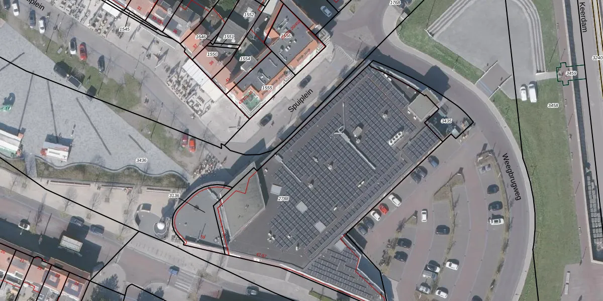 Het perceel waarop Spuiplein 49 staat heeft een oppervlakte van 3055 m². Dit is een zeer groot perceel. De perceeloppervlakte wordt geregistreerd door het Kadaster. Gedetailleerde informatie over de maten van dit perceel kunt u vinden in het rapport Kadastrale kaart met maatvoering van Spuiplein 49.