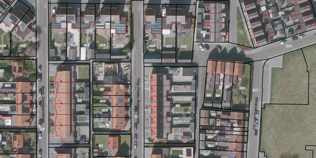 Thijs Feddo Blankenstraat 9 is gelegen op kadastraal perceel OBG00EB732. Deze kadastrale aanduiding is uniek en wordt gebruikt door het Kadaster om eigendomsrechten en andere zakelijke rechten vast te leggen. Het perceel maakt onderdeel uit van de kadastrale gemeente Oostburg.