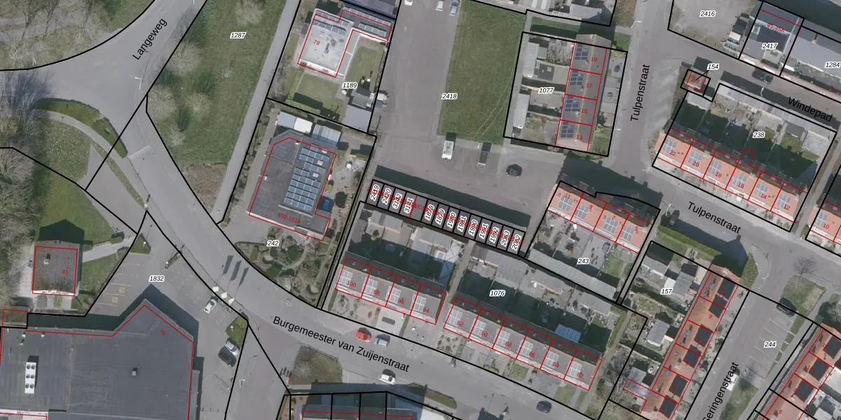 Tulpenstraat 11-G10 is gelegen op kadastraal perceel OBG00EB3141. Deze kadastrale aanduiding is uniek en wordt gebruikt door het Kadaster om eigendomsrechten en andere zakelijke rechten vast te leggen. Het perceel maakt onderdeel uit van de kadastrale gemeente Oostburg.