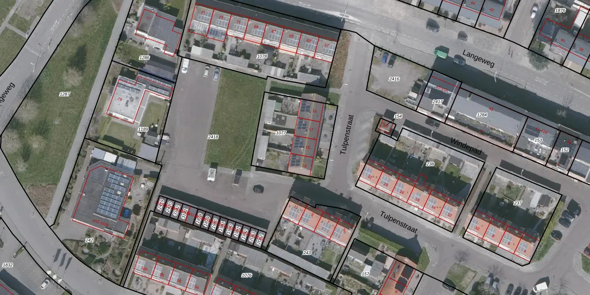 Tulpenstraat 15 is gelegen op kadastraal perceel OBG00EB1077. Deze kadastrale aanduiding is uniek en wordt gebruikt door het Kadaster om eigendomsrechten en andere zakelijke rechten vast te leggen. Het perceel maakt onderdeel uit van de kadastrale gemeente Oostburg.